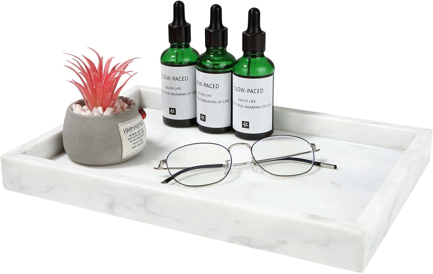 MIVIDE 25x15CM Marble Tray, Marble Bathroom Vanity Tray, Perfume Holder Jewlery