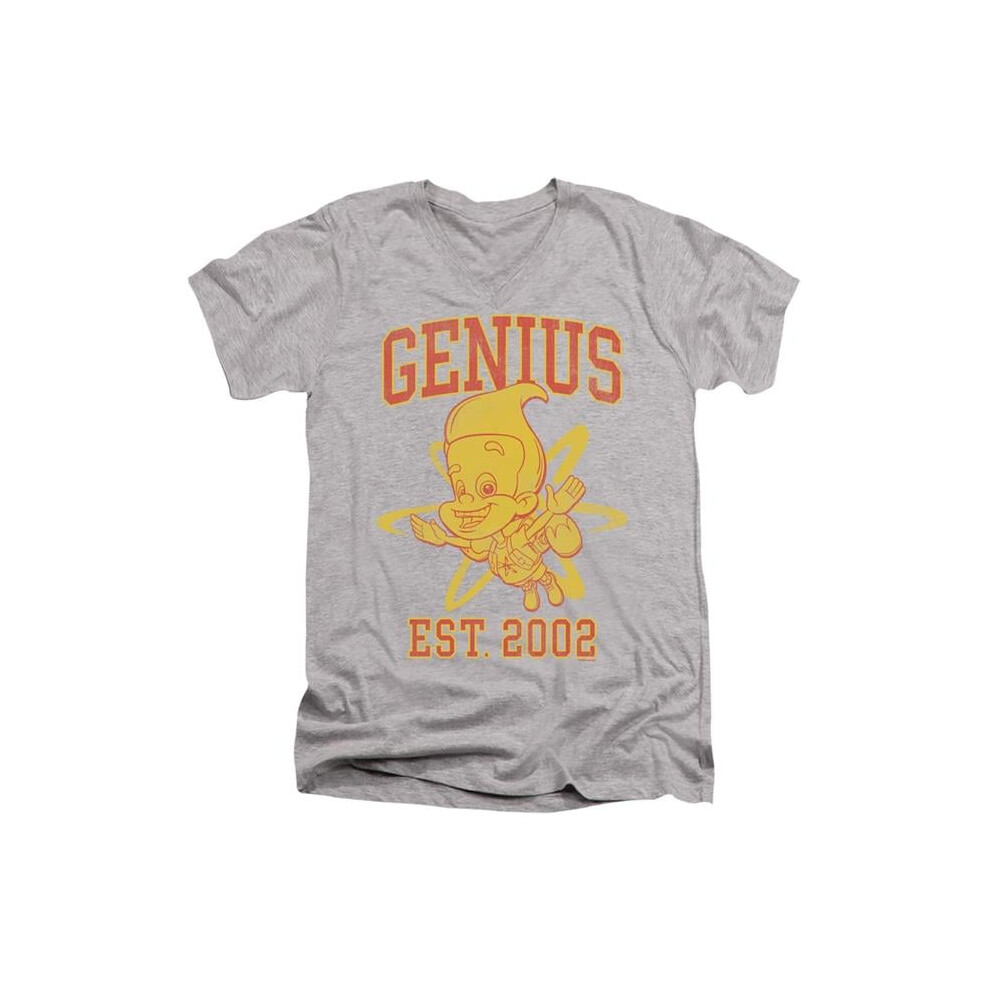 Trevco Sportswear NICK744-AV-3 Jimmy Neutron Genius Collegiate Adult Slim Fit V-Neck Cotton T-Shirt, Athletic Heather - Large