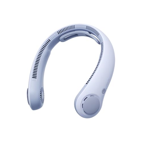 JISULIFE Portable Neck Fan Upgraded, Neckbrace Personal Hands Free, 5 Speed Gears Adjustment, 5000 mAh Wearable Bladeless Quiet Rechargeable for Outdoor Indoor, Gifts for Women Men- Sunny Blue
