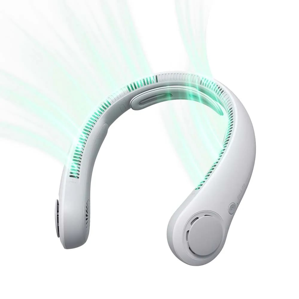 JISULIFE Portable Neck Fan, Hands-Free Bladeless, 5 Speeds, 4000 mAh Battery Op