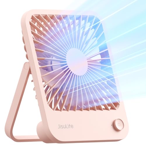 JISULIFE Small Desk Fan Rechargeable Battery Powered, 180°Foldable Portable USB Fan, 4 Speeds Adjustable, Silent Powerful for Home Office Travel Outdoor-Pink