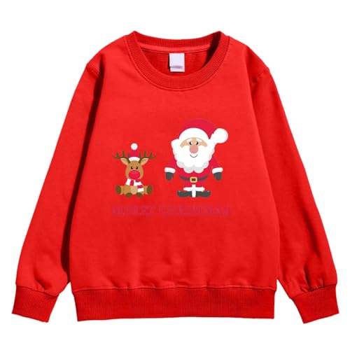 Marry Christmas Kids Sweatshirt Santa Deer Long Sleeves Winter Sport Sweaters Solid Color Casual Loose Tops Soft Warm Comfy Loose Fit Pullover Sweatshirts Boys Girls Winter Clothes (Red, 3-4 Years)