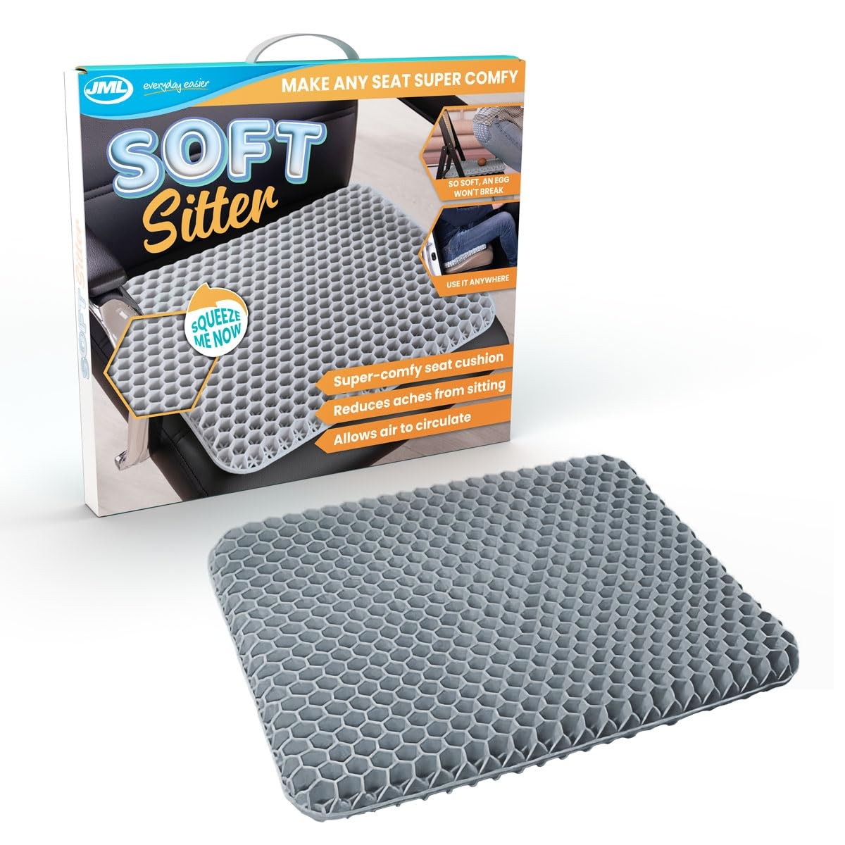 JML Soft Sitter Honeycomb Cushion - Gel Seat Cushion for Support and Flexibility