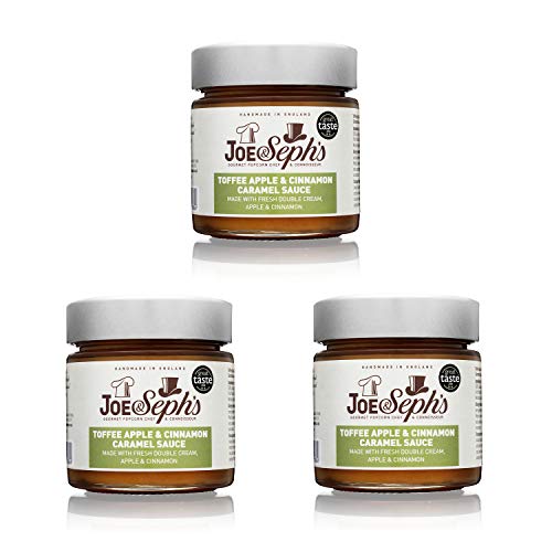 Joe & Sephs Toffee Apple and Cinnamon Caramel Sauce (3x230g)| 2 Star Great Taste Award Winner, caramel drizzle, ice cream sauce, caramel sauce for coffee, vegetarian, home baking, cakes, caramel syrup