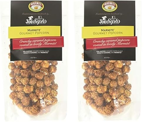 Joe & Sephs Marmite Popcorn - 1 x Sharing Bag | Handmade in UK, using real Marmite | Suitable for Vegetarians | Air-popped | Movie night in - 75g (Pack of 2)