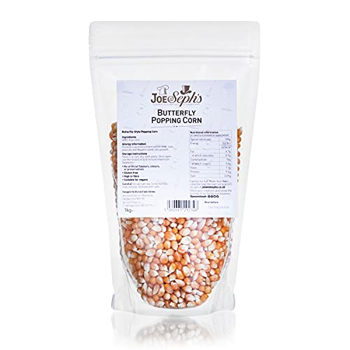 Joe & Sephs Popping Corn Kernels (1x1kg) | XX-Large Bag, Cinema Style, Popping corn for a popcorn maker, movie night snack, unflavoured kernels, healthy snacks, DIY