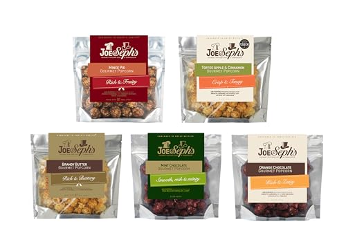 Joe & Seph's Festive Popcorn Tasting Selection (5x30g) | Mint Chocolate, Mince Pie, Brandy Butter, Toffee Apple & Cinnamon and Orange Chocolate, gourmet popcorn, festive snacks