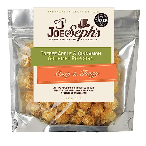 Joe & Seph's Toffee Apple with Cinnamon Popcorn Snack Bag, Handmade in UK, Suitable for Vegetarians, Gluten Free, Air-Popped, Movie Night in, 32 g