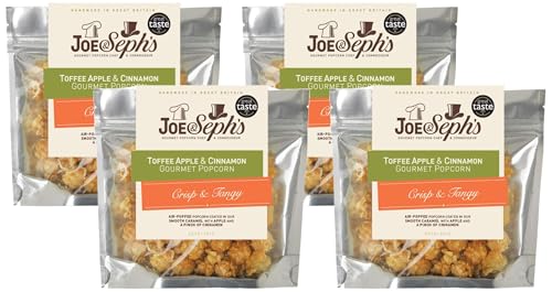 Joe & Sephs Toffee Apple with Cinnamon Popcorn Snack Bag, Handmade in UK, Suitable for Vegetarians, Gluten Free, Air-Popped, Movie Night in, 32 g (Pack of 4)