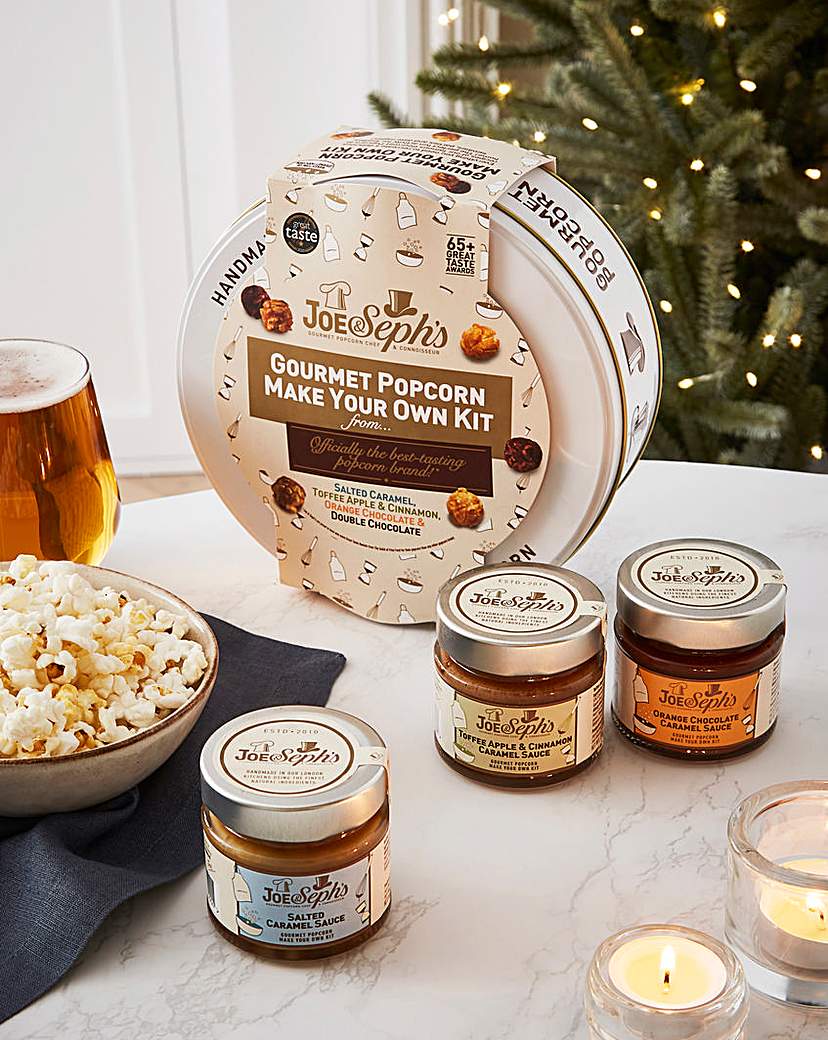 Joe & Sephs Night in Popcorn Gift Box - Gift Box Filled with 2 x Popcorn and 1 x Chocolate Popcorn Bites