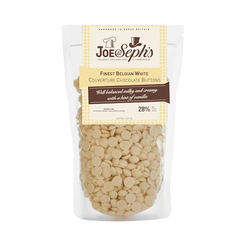 Joe & Sephs Finest Belgian White Chocolate Buttons (800g), Finest Couverture Belgian White Chocolate Buttons, 28% of Cocoa, Perfect for Chocolate Fountains, Desserts, Baking, Glazing and More