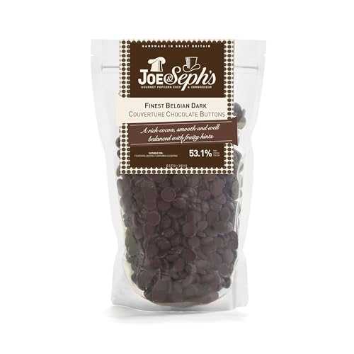 Joe & Sephs Finest Belgian Dark Chocolate Buttons (800g), Finest Couverture Belgian Dark Chocolate Buttons, 53.1% of Cocoa, Perfect for Chocolate Fountains, Desserts, Baking, Glazing and More