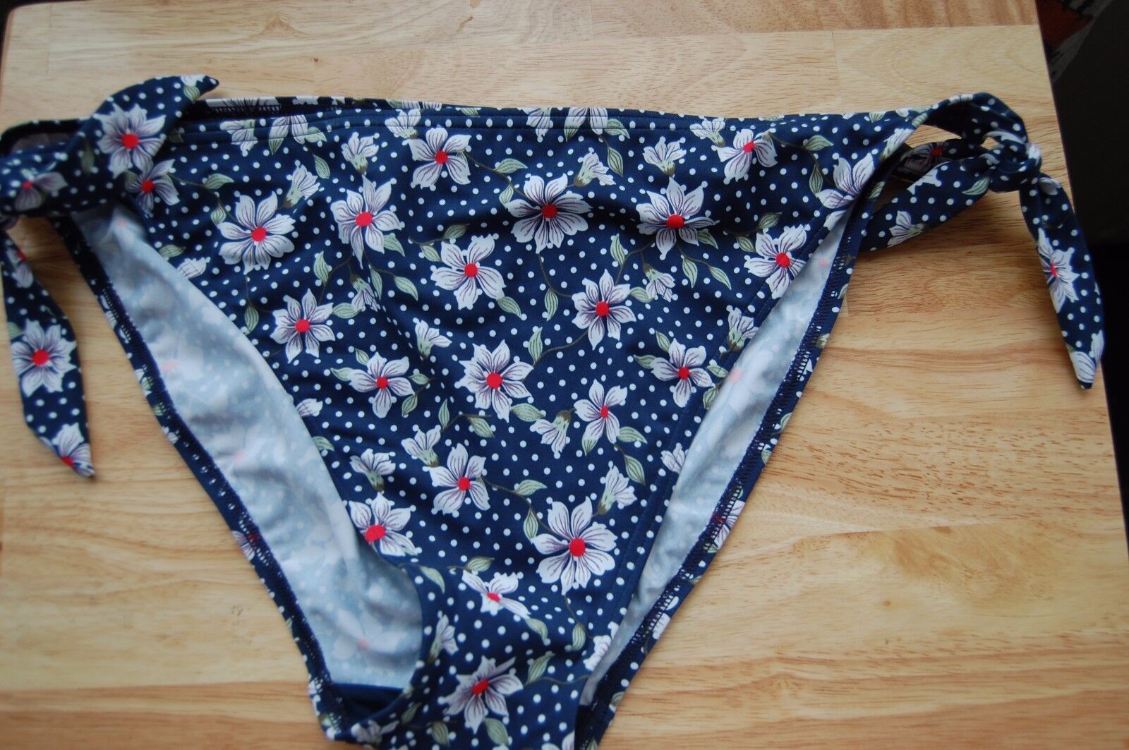 M&S Side Tie Bikini Bottoms Navy Mix Flowers and Spots Size UK 20 BNWT