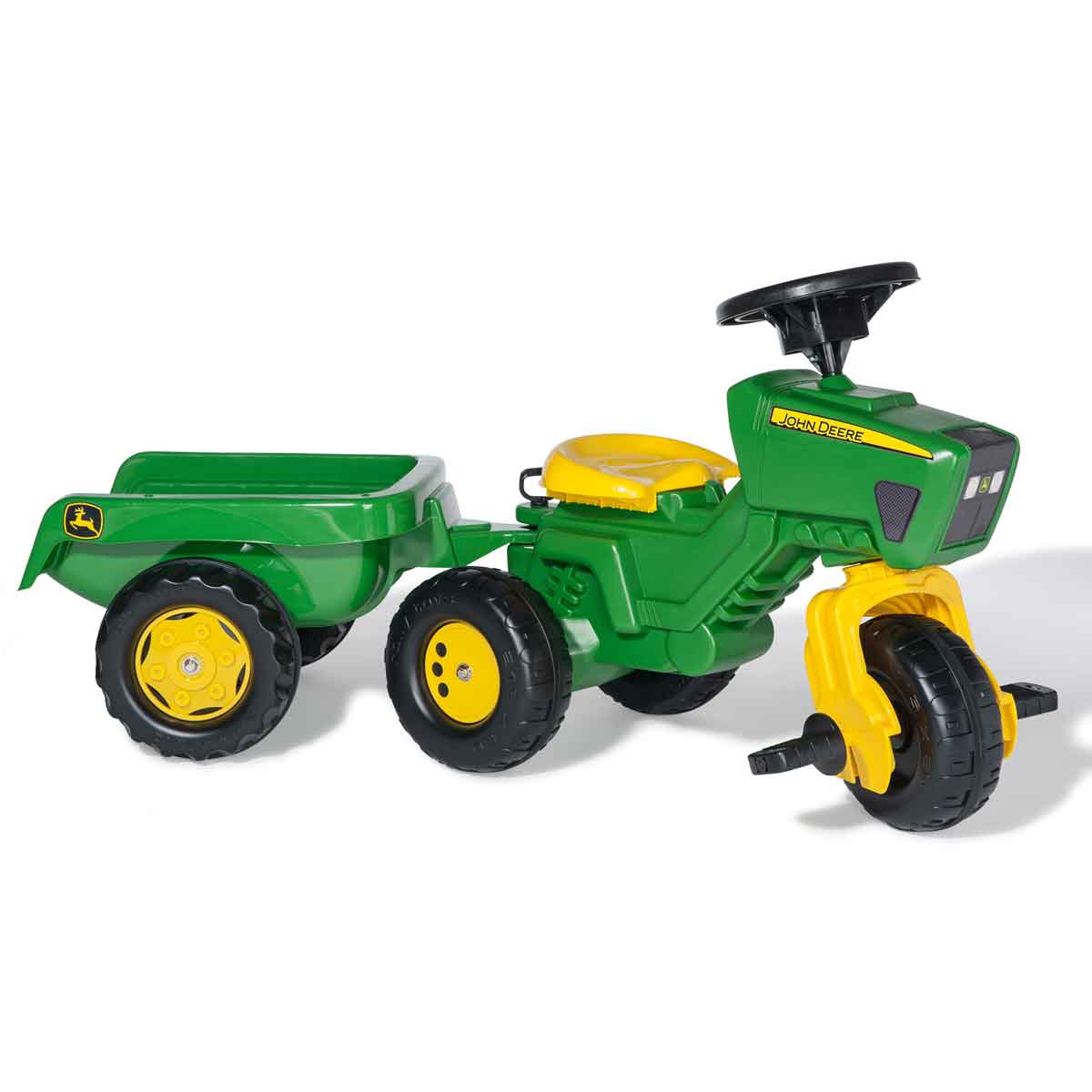 Rolly Toys John Deer Trio Trac Ride On Tractor with Electronic Steering Wheel and Trailer, Green