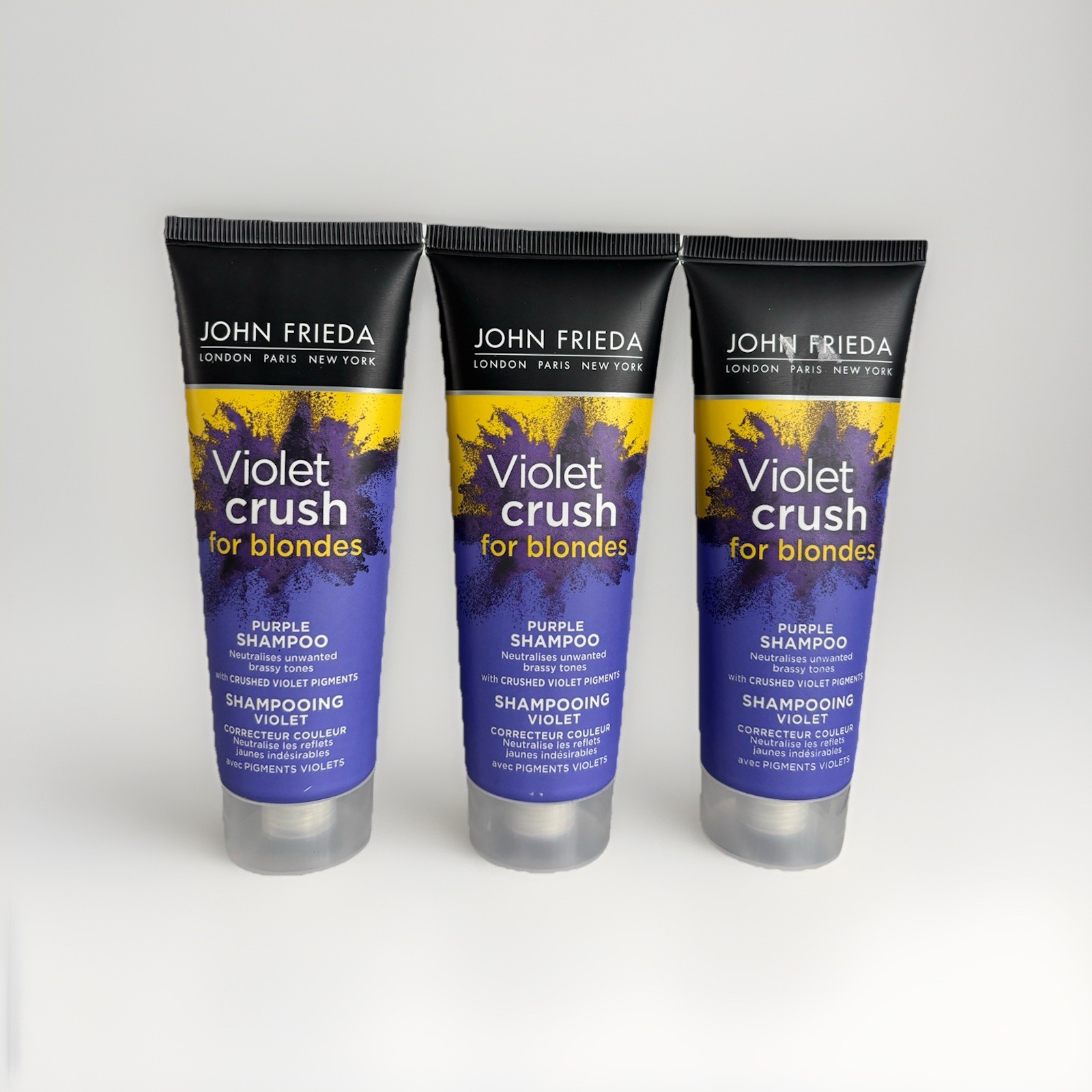 John Frieda Violet Crush for Blondes Purple Shampoo Blonde Hair 75ml X3 New