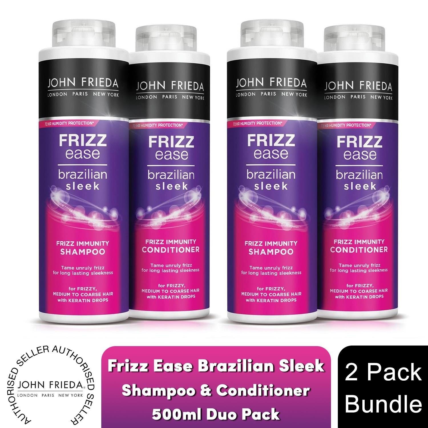 John Frieda Frizz Ease Brazilian Sleek Frizz Immunity Smoothing Shampoo and Conditioner Duo Pack 2 x 500ml, Smoothing Anti-Frizz Shampoo and Conditioner Bundle For Frizzy, Dry Hair