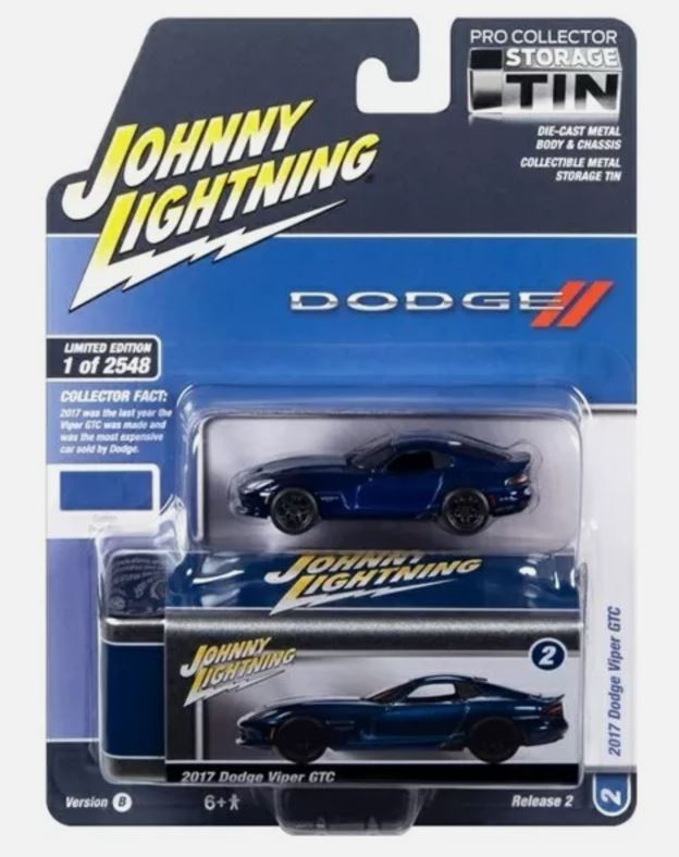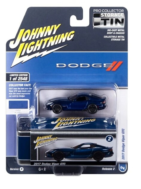 JOHNNY LIGHTNING, DODGE Viper GTC 2017 Blue from the COLLECTOR TINS series in...