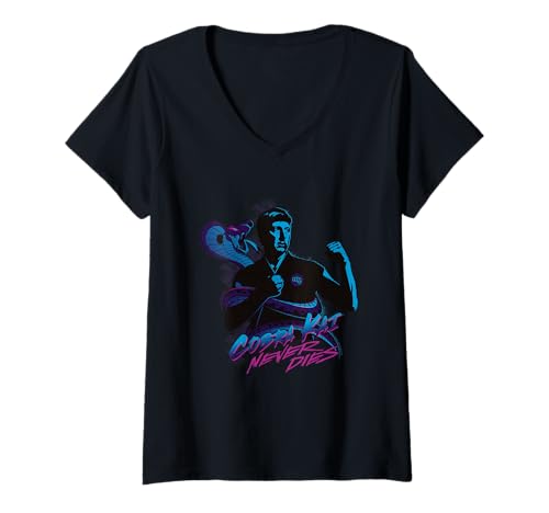 Womens Cobra Kai Never Dies Johnny Blue Silhouette TV Show V-Neck T-Shirt