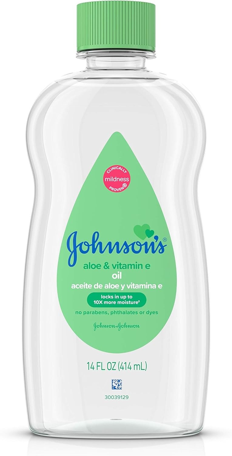 Johnson's Baby Oil ALOE & VITAMIN E Oil For Dry Skin 14 oz / 414 mL NEW! (UK)