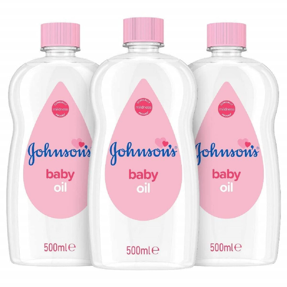 Johnson's Baby Oil, Leaves Skin Soft and Smooth Ideal for Delicate Skin, 500 ml, Pack of 3