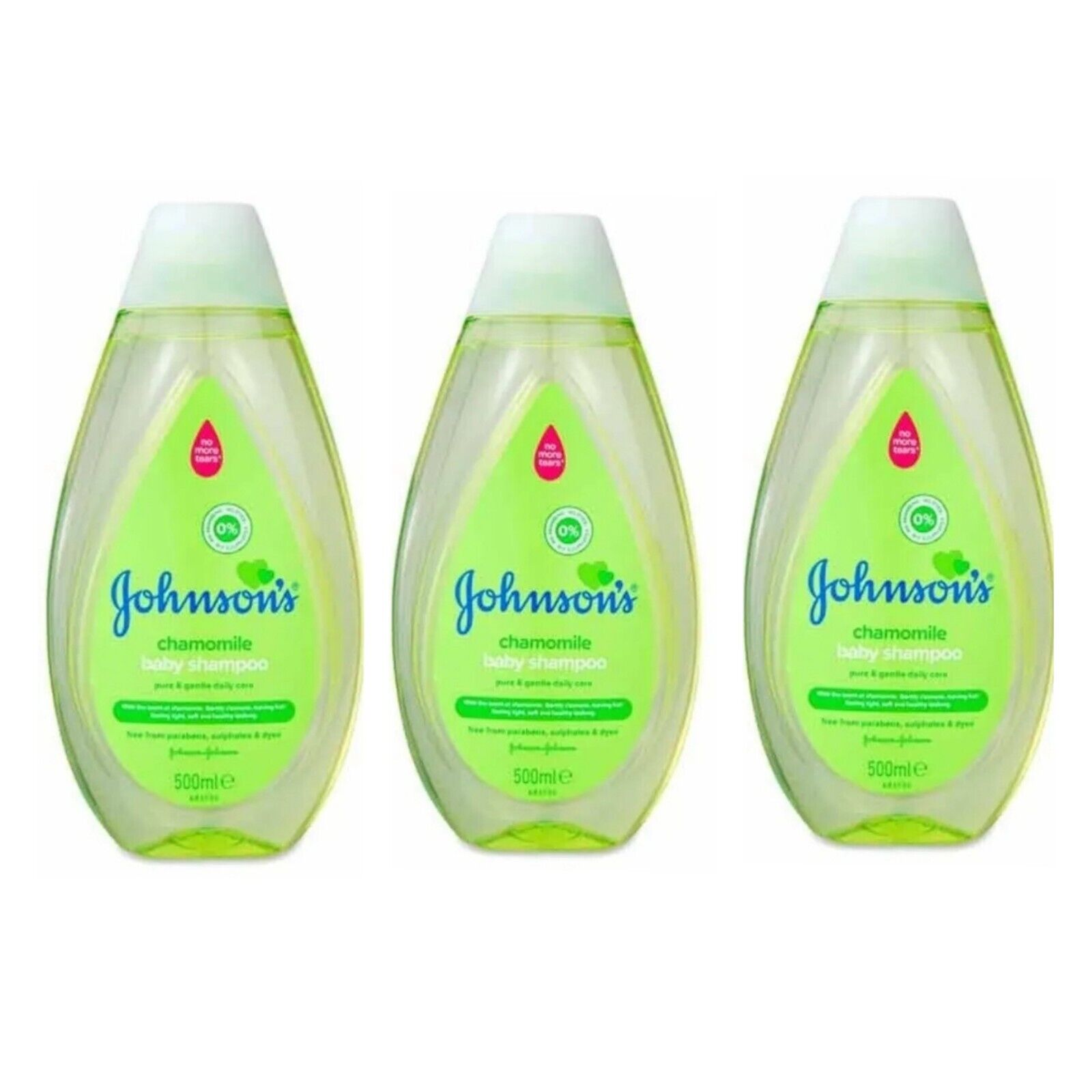 Johnson's Baby Chamomile Shampoo 500ml Pure & Gentle Daily Care Pack of 3