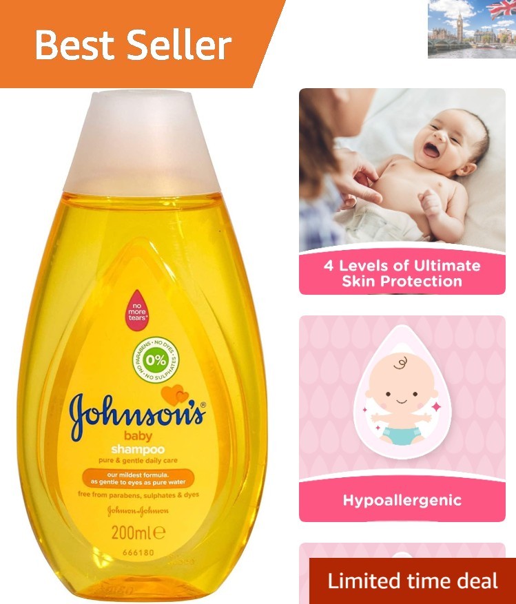 Johnson's Gentle Baby Shampoo 200ml - All Hair Types, Free from Harsh Chemicals