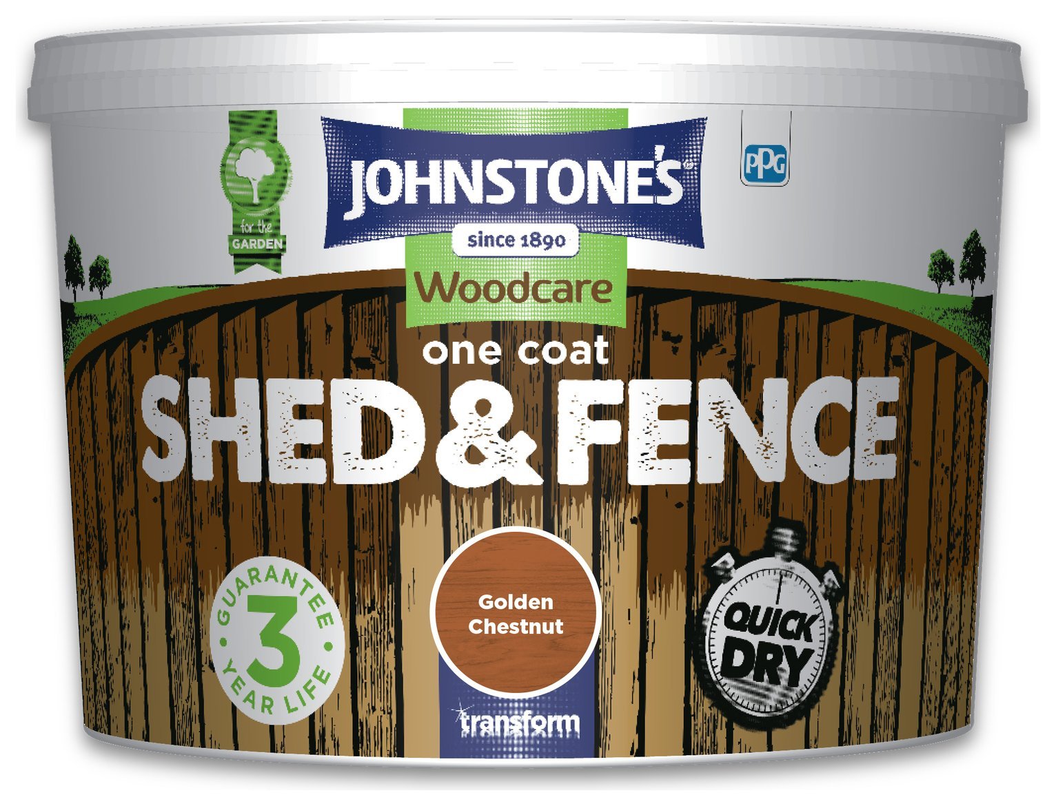 Johnstone's Woodcare One Coat Shed & Fence Paint Golden Chestnut 5L Long Lasting