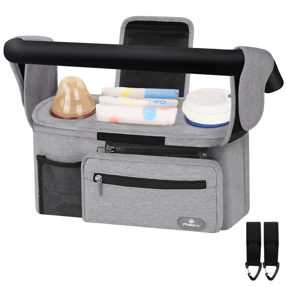 Philorn Baby Pram Bag with Insulated Cup Holder, Buggy Organiser for Baby Essentials Fits Universal Strollers Like Joie, YOYO Pushchair Handlebar,