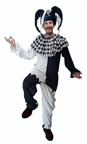 The Dragons Den Adults Medieval Court Jester Joker Kings Fool Halloween Fancy Dress Costume [L-XL]