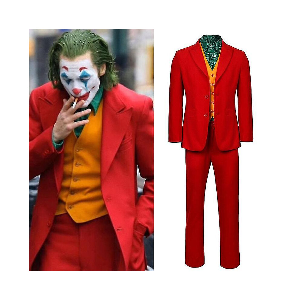 (With wig, L) Movie Joker Cosplay Costume For Men And Kids Arthur Fleck Full Set Halloween Fancy Dress Carnival Costume
