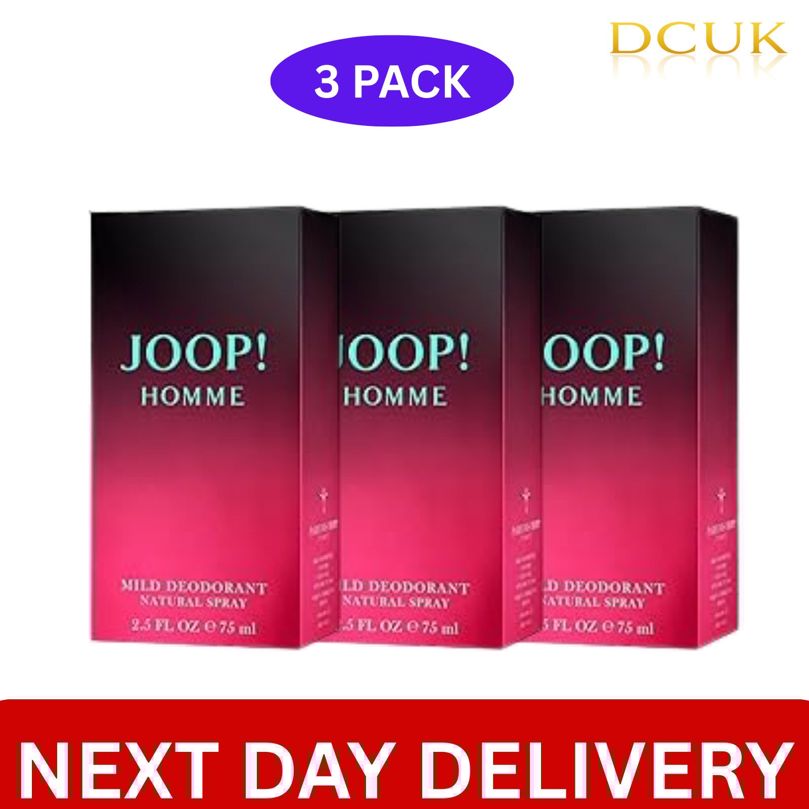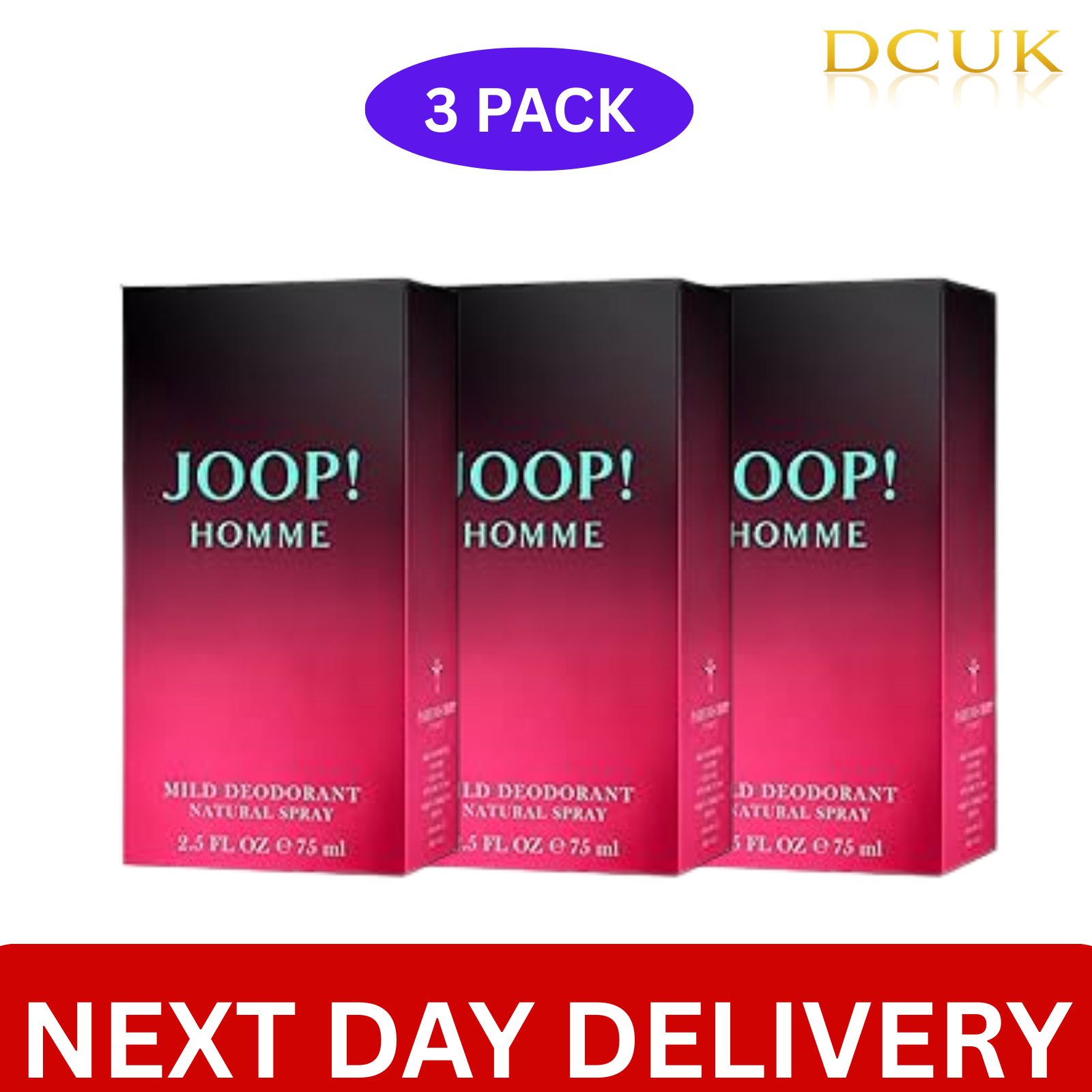 JOOP HOMME MILD DEODORANT NATURAL SPRAY 75ML BRAND NEW & SEALED (PACK OF 3)