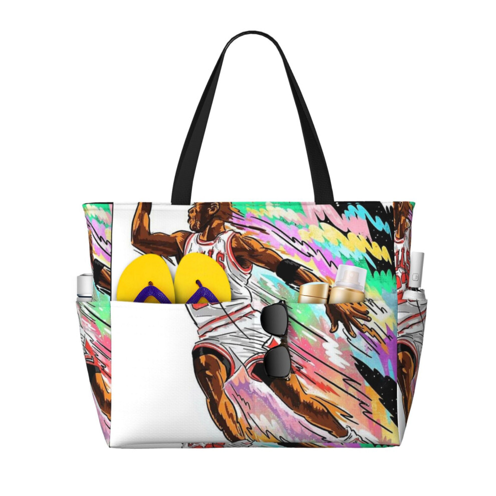 (23 Jordan_3747) Beach Bag for Women Large Capacity Waterproof Sandproof Tote with 7 Pockets Pool Zipper Bags for Travel Vacation Gym Camping Shopping