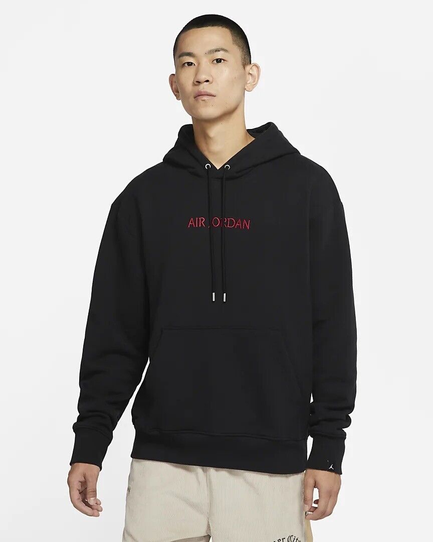 Men’s Nike Air Jordan Heavyweight Pullover Fleece Hoodie Black Red Size Small