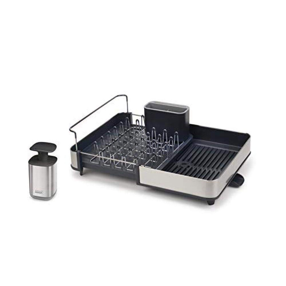 Joseph Joseph Rethink Your Sink - 2-piece Sink Organisation Set, Stainless Steel, Extendable Dish Drainer Rack with Draining Spout and Chopping Board