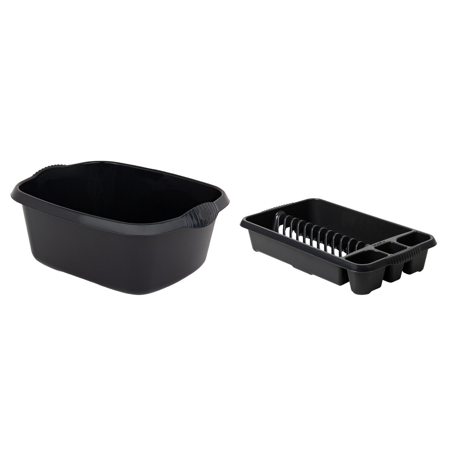 JVL Plastic Dish Drainer and Rectangular Washing Up Bowl Kitchen Set, Grey