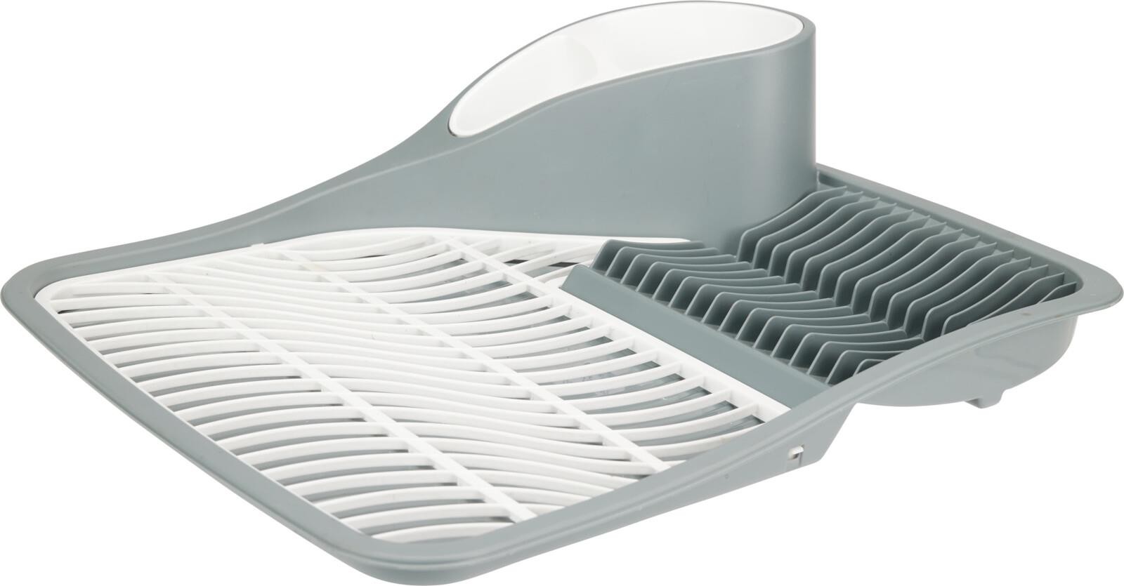 Kitchen Dish Drainer Rack - Separate Cutlery Holder - Removable Drip Tray - grey