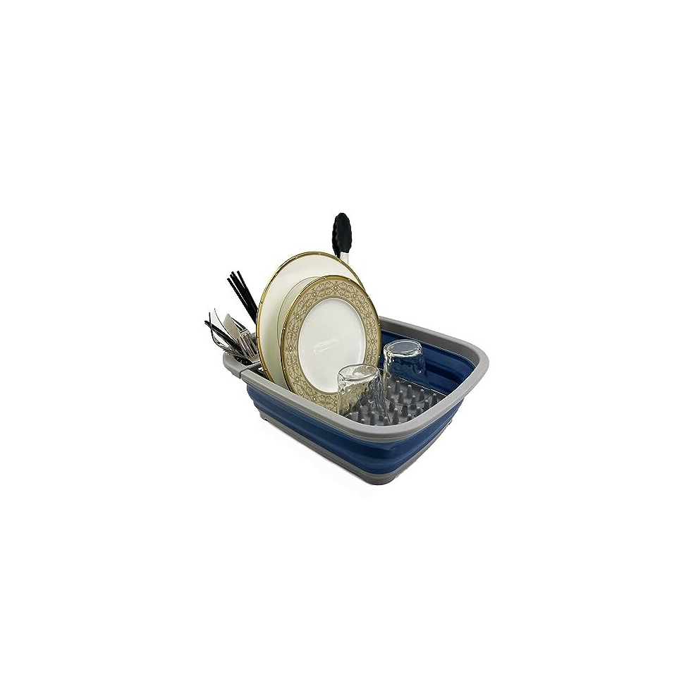 8 Litres Collapsible Dish Drainer - Foldable Drying Rack - Portable Dinnerware Organizer - Space Saving Kitchen Storage Tray (Grey/Mist Blue(dish