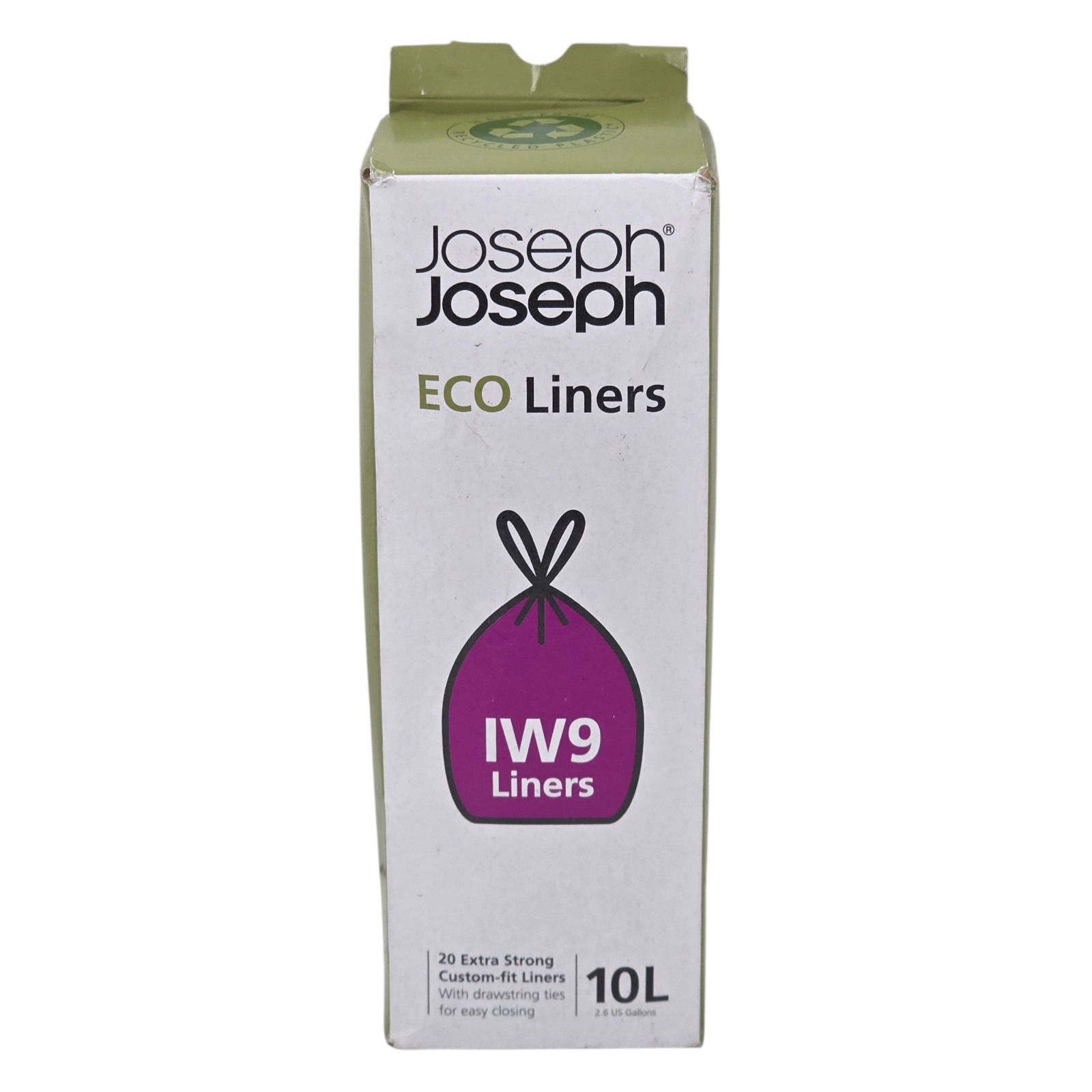 Joseph Joseph Eco Liners IW8 Eco Recycled plastic Bin Liners Kitchen Bathroom Trash Bags With Tie Tape Drawstring Handles Extra Strong - Pack of 20