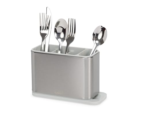 Joseph Joseph Duo Cutlery Drainer and Sink Caddy, 2 compartment easy drain organiser ideal for Kitchen Countertop, Stainless Steel