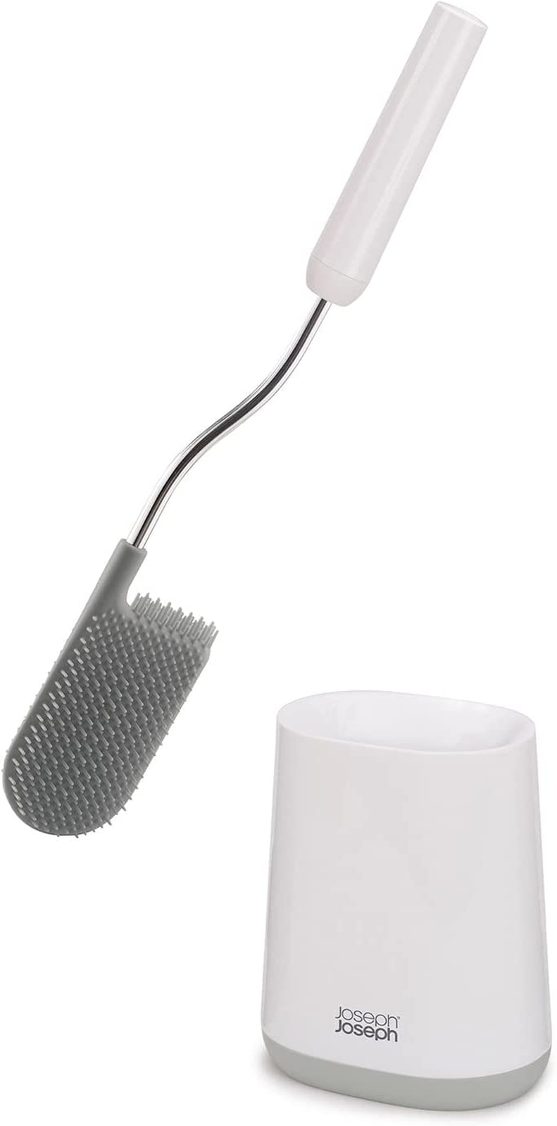 Joseph Joseph Flex - Smart Hygienic Silicone Toilet Brush with Holder Set, flexible anti-drip, anti-clog deep clean head - White/Grey