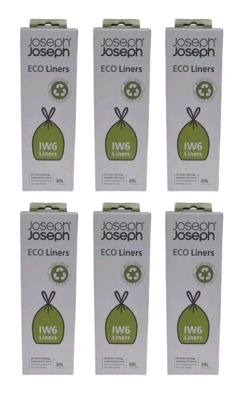 6 x Joseph Joseph IW6 Eco 30L Liners 120 Waste Bin Bags.