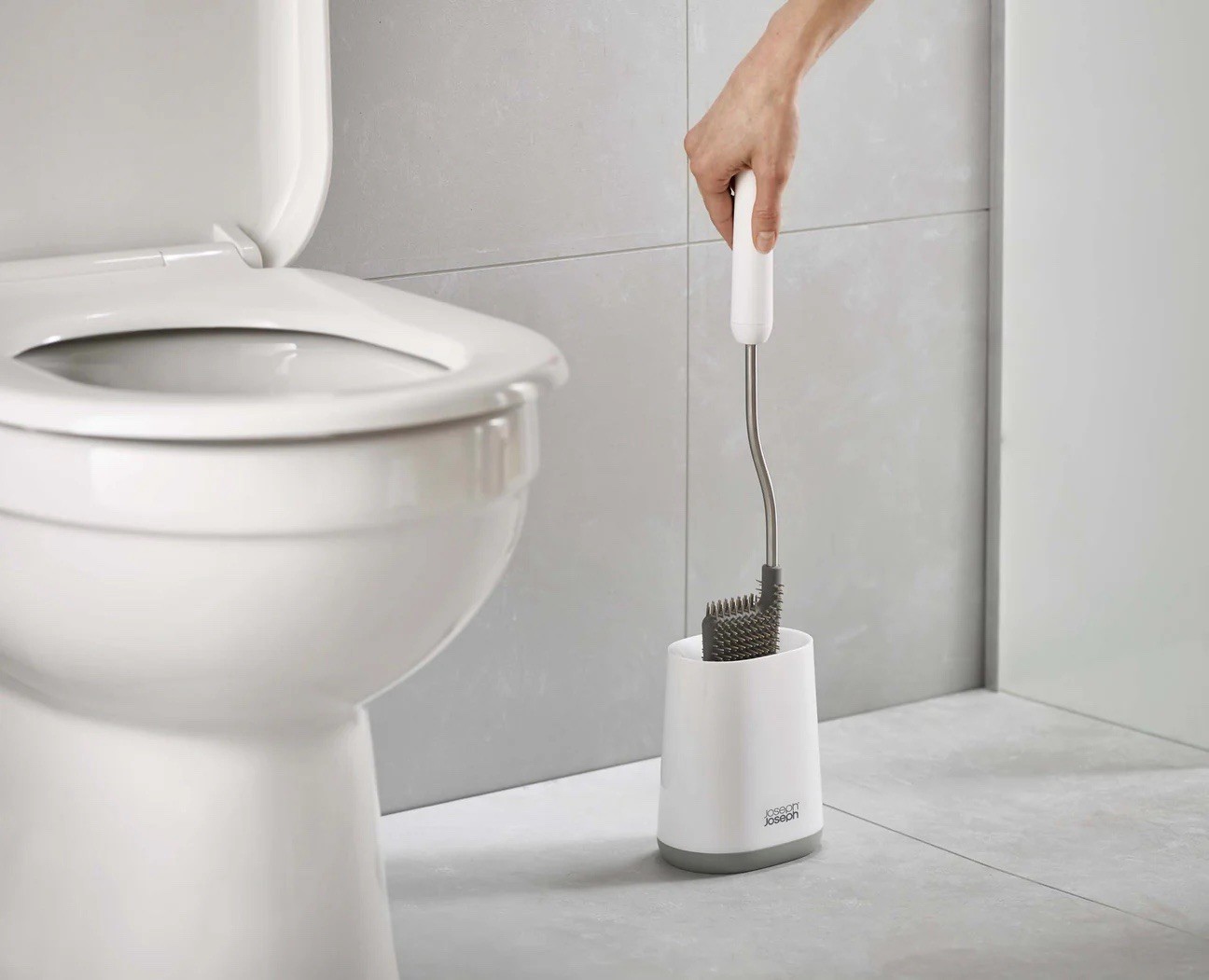 Joseph Joseph Bathroom Flex Smart Toilet Brush with Holder- White/Grey