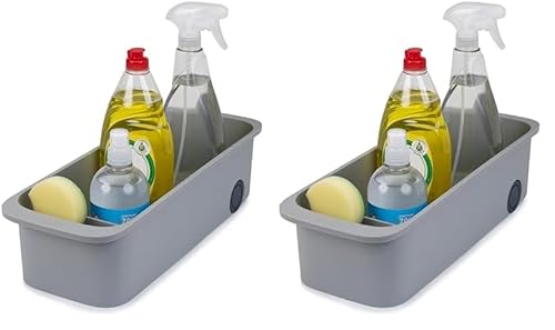 Joseph Joseph Duo Sink Tidy, Kitchen Sink Cleaning Caddy Organiser with Sponge Holder, Grey
