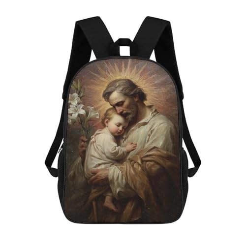 sinyumoney 3D Printed 17inch Saint Joseph with Child Jesus Children's School Bags Rucksacks High Capacity Travel Kids School Bag Fashion Book Bags Boy Girl Back Pack