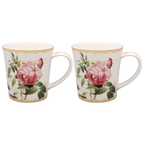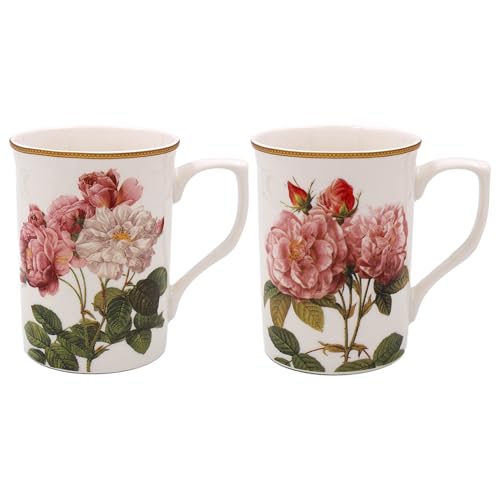 The Leonardo Collection Redoute Rose Mugs Set of 2 Pierre-Joseph Redoute, Tea and Coffee Mug for Hot Drinks | Fine China Printed Mugs for Kitchen & Home | Reusable Ceramic Cups for Every Occasion