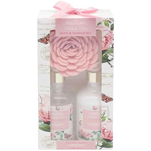 The Leonardo Collection Pierre-Joseph Redoute Redoute Rose Bath & Shower Set For Women & Men| Cruelty-Free Shower Gel & Bubble Bath | Travel Friendly Skincare Kit | Moisturising & Nourishing Body Wash