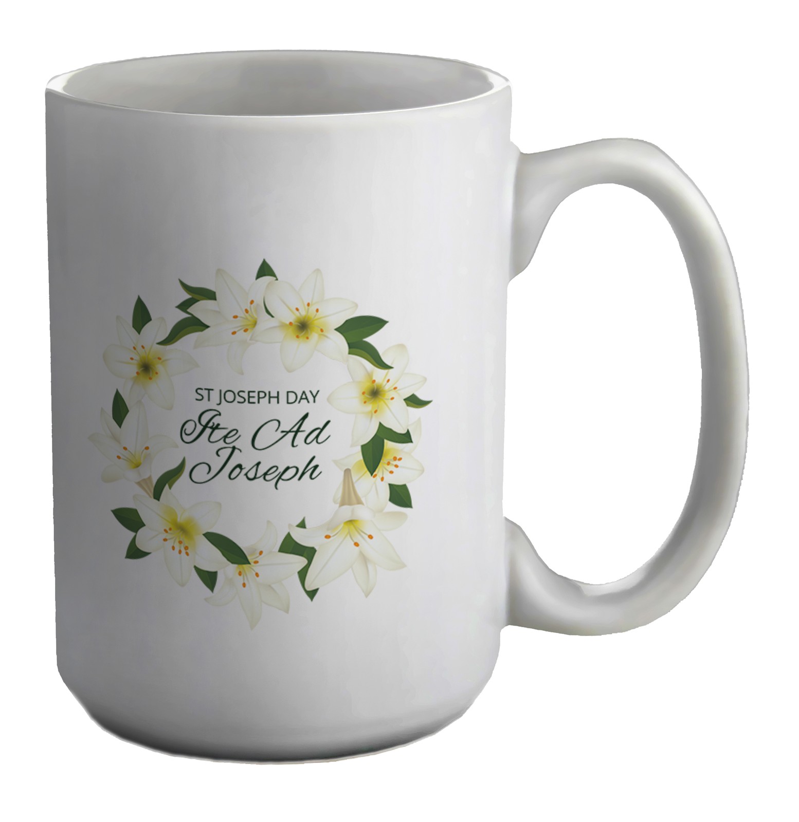 St Joseph Day Ite Ad Joseph Lilly Wreath Mug 15oz Large Cup Gift White