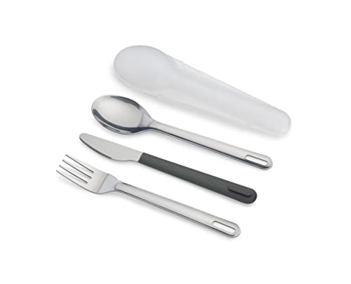 Joseph Joseph GoEat - On the Go Stainless-Steel Travel Cutlery Set for 1, Reusable Knife, Fork and Spoon Set with case for Lunch Box, Camping, Outdoor, Grey
