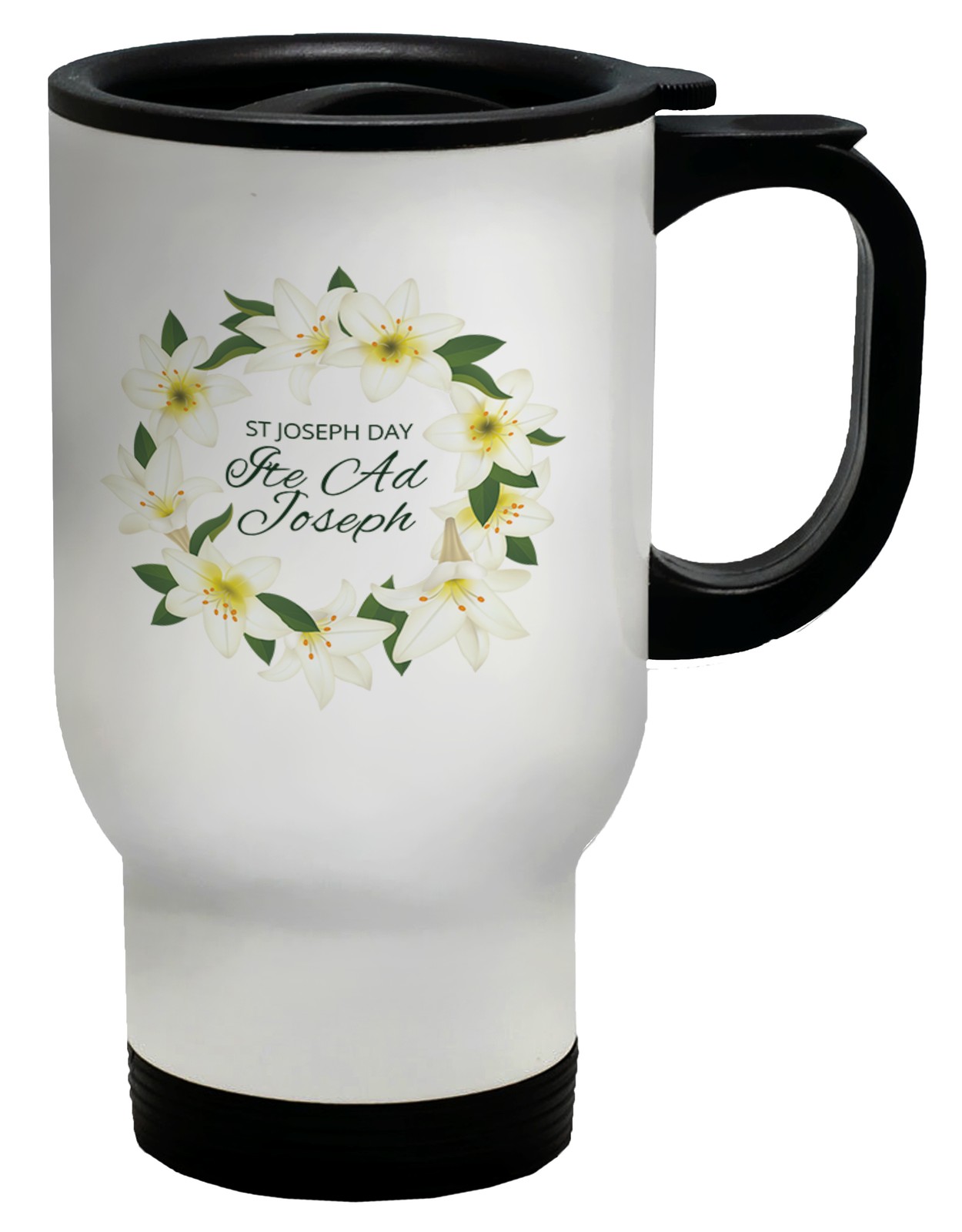 St Joseph Day Ite Ad Joseph Lilly Wreath Travel Mug Cup Gift White