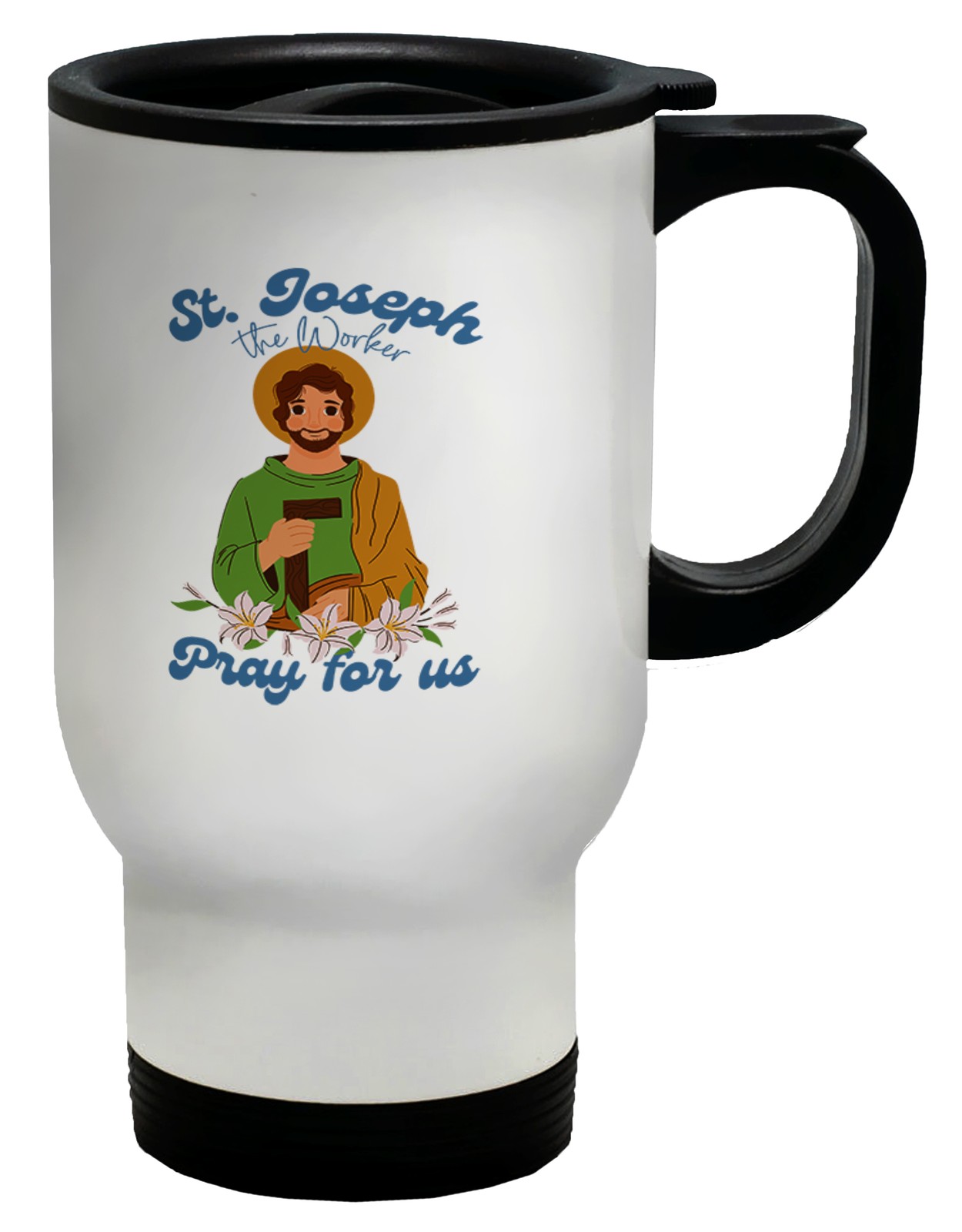 St Joseph The Worker Pray for Us Travel Mug Cup Gift White